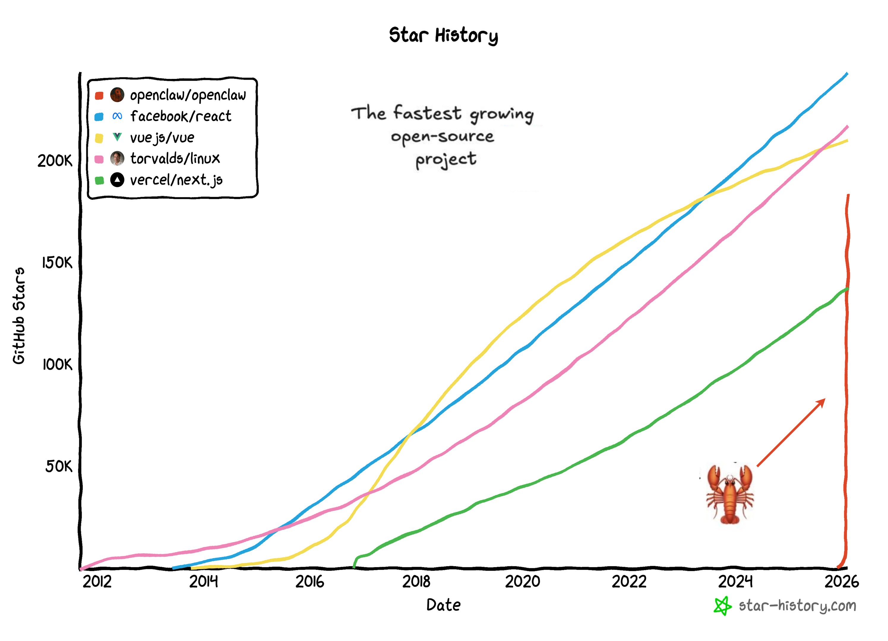 How did we get here? In just eight weeks, OpenClaw went from a weekend WhatsApp relay script to one of the fastest-growing open-source projects in GitHub history, surpassing 180,000 stars by early February. The growth wasn’t just viral; it was unprecedented.