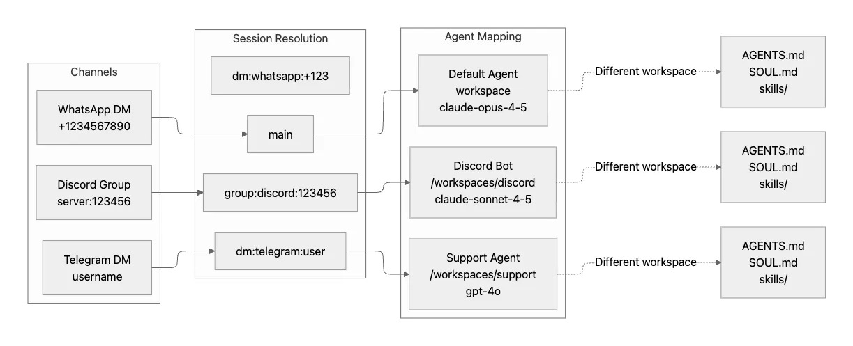 Inbound message parsing handles the messy reality of different platforms’ data formats. Each adapter extracts text, handles media attachments (images, audio, video, documents), processes reactions and emojis, and maintains thread or reply context. This normalization layer means the rest of OpenClaw doesn’t need to know whether a message came from WhatsApp or Discord.